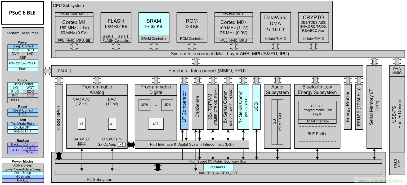 例如,用于制造賽普拉斯半導(dǎo)體 PSoC 6 BLE 系列 MCU 的 40 納米工藝技術(shù),為各種物聯(lián)網(wǎng)應(yīng)用提供了高性能,且高效節(jié)能的解決方案。深度睡眠時(shí)的電流僅為幾微安,且能夠完全保留RAM數(shù)據(jù)。運(yùn)行、睡眠、低功耗運(yùn)行和低功耗睡眠等其他功耗模式,助力開發(fā)人員能夠在靈活地優(yōu)化系統(tǒng)功耗的同時(shí)根據(jù)需求保持應(yīng)用的高性能。