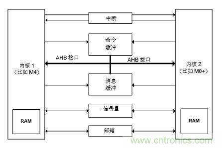 中斷法:這種方法讓一個(gè)內(nèi)核向另一個(gè)內(nèi)核發(fā)送一個(gè)中斷來(lái)指示一個(gè)應(yīng)用程序事件。通常中斷程序非常緊湊,不會(huì)占用太多的代碼存儲(chǔ)空間。與任何中斷機(jī)制一樣,每個(gè)中斷都有自己的 ISR(中斷服務(wù)程序),通過它可以讓相應(yīng)的內(nèi)核執(zhí)行特定的任務(wù)。在實(shí)際的數(shù)據(jù)傳遞中,有一個(gè)可以被多個(gè)內(nèi)核訪問的共享內(nèi)存。除了共享數(shù)據(jù)之外,它還提供了請(qǐng)求和確認(rèn)消息的機(jī)制。