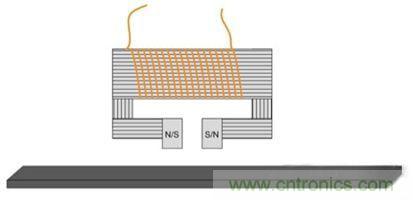 在實(shí)用化系統(tǒng)中需要用到一個(gè)寫(xiě)入磁頭,它其實(shí)就是繞在磁心上的一個(gè)線(xiàn)圈。通過(guò)控制線(xiàn)圈中的電流方向可以很容易編程磁場(chǎng)方向。這有助于在磁卡上形成南北極圖案。磁極之間的空隙越窄,磁卡上能夠編程的數(shù)據(jù)密度就越高。