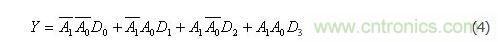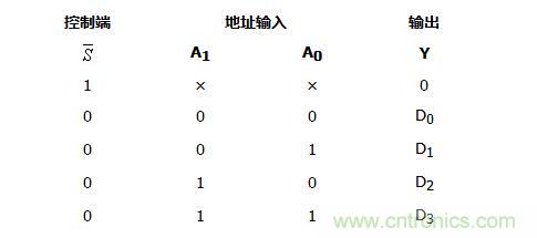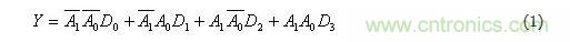 由表2可知,具有兩位地址輸入A0、A1的4選1數(shù)據(jù)選擇器,當(dāng)使能控制端=0時(shí),輸出與輸入之間的邏輯關(guān)系式為