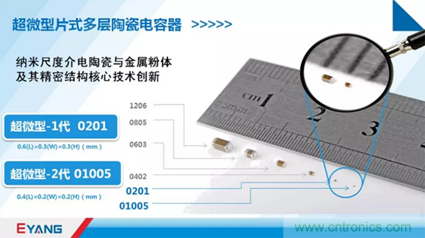 宇陽科技從2001年成立之初便明確了超微型化MLCC的發(fā)展方向。從0402做起,始終進行著超微型產(chǎn)品的開發(fā)與產(chǎn)業(yè)化。消費類電子產(chǎn)品未來的方向一定是多功能、小型化或者是輕薄化、便攜式。對所有元器件來講,無論是從低功耗的角度考慮,還是從整個設(shè)計考慮,都是微型化的發(fā)展方向。憑借對MLCC的專注和堅持,宇陽成為國內(nèi)最大的MLCC廠商,目前0201尺寸MLCC產(chǎn)銷量已經(jīng)躋身全球前三。