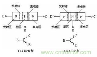 2.發(fā)射結(jié)和集電結(jié)都是屬于pn結(jié),具備pn結(jié)的特性,因此其結(jié)構(gòu)相當(dāng)于一個(gè)極(陰極和陰極或者陽極和陽極)并聯(lián)在一起的兩個(gè)二極管,這個(gè)公共的電極就是基極,而另外兩個(gè)極就是集電極和發(fā)射極;見圖二,上面的對(duì)應(yīng)的是npn型三極管,下面的對(duì)應(yīng)的是pnp型三極管;