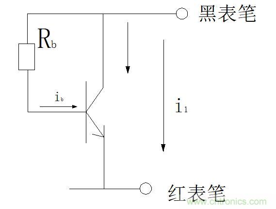 測(cè)量pnp三極管的方法同上,不同的是基極應(yīng)該接負(fù)極(紅筆)。