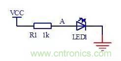 在電源與電路的A之間接入電阻時,A點的電壓就比電源電壓低,可以為發(fā)光二極管提供合適的電壓。電阻R1同時限制該條支路的電流,保護(hù)發(fā)光二極管不會因為電流太大而燒壞,這種電阻在電路中一般稱為降壓電阻或者是限流電阻。