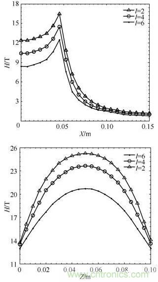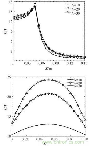 圖9:不同匝數(shù)下磁場強度H分布曲線