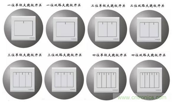 開(kāi)關(guān)類(lèi)(使用功能):一開(kāi)、二開(kāi)、三開(kāi)、四開(kāi)指開(kāi)關(guān)上的按鍵,又名:一位、二位、三位、四位或單聯(lián)、雙聯(lián)、三聯(lián)、四聯(lián)。