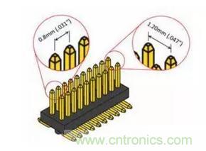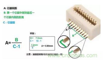 請注意,在這個(gè)例子中,同一排相鄰引腳間距的測量和兩排之間引腳間距是不一樣的。同一排相鄰引腳間距的測量和兩排之間引腳間距可以相同,所以連接器一定要仔細(xì)檢查這兩個(gè)參數(shù)。