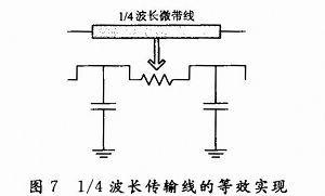 這是一個180°定向耦合器,也稱為rat-race網(wǎng)絡(luò),如圖5所示。物理上可以通過微帶實現(xiàn),如圖6所示。然而對于第1部分提出的710 MHz天線,由于波長太長,這樣的耦合器在移動設(shè)備上無法實現(xiàn)。為了實現(xiàn)去耦合,可以用貼片電感和電容做出成等效傳輸線,從而用電感和電容做成一個耦合網(wǎng)絡(luò),這就可以顯著降低耦合器占用的體積。如圖7所示,一個等效1/4波長傳輸線可以用兩個電容和一個電感來等效代替。電容和電感的計算公式為: