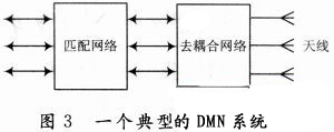 為了提高天線的輻射效率,學(xué)者們提出了DMN技術(shù),即在多個天線的輸入端先加耦合器以去掉天線之間的耦合,然后加匹配網(wǎng)絡(luò),如圖3所示。文獻(xiàn)對這種方法進(jìn)行了詳細(xì)論述,并闡述了用S參數(shù)分析正交模的方法。下面對一個二端口網(wǎng)絡(luò)的天線進(jìn)行S參數(shù)的分析。