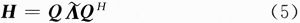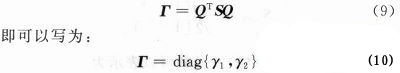 式中:A=diag{λ1,λ2},而Q是幺正的(即QQH=I)。根據(jù)厄米特矩陣的性質(zhì),兩個正交值λ1和λ2都是實數(shù),并且小于等于1。將式(5)代入式(4)得: