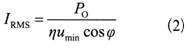設(shè)輸入有效值電流為IRMS,整流橋額定的有效值電流為IBR,應(yīng)當(dāng)使IBR≥2IRMS。計(jì)算IRMS的公式如下: