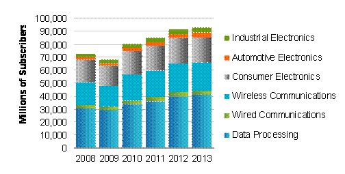 圖1:2008年-2013年中國半導體市場預測: