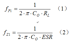 其中:CO為輸出電容,ESR為輸出電容等效串聯(lián)電阻,RL為等效負(fù)載電阻。