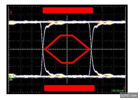 通過在示波器的垂直軸對數(shù)字信號進(jìn)行反復(fù)采樣、同時采用相應(yīng)數(shù)據(jù)率對水平時間掃描進(jìn)行觸發(fā)來生成眼圖。所獲得的圖形看上去象眼睛,如圖1所示。“眼睛”越大,數(shù)據(jù)完整性越高。通常采用模板(mask)來對可接受的信號質(zhì)量進(jìn)行定義。這模板由“眼睛”中間的六角形和“眼睛”上、下的矩陣組成。如果測得的信號跡線穿越模板的邊線,那么信號質(zhì)量就不可接受。USB2.0信號模板規(guī)范由USB應(yīng)用者論壇(USBIF,www.usb.org)提供,可參見USB2.0版規(guī)范第7.1.2.2章節(jié)。圖1中顯示了帶有詳細(xì)臨界點的眼圖。