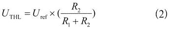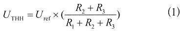 式(1)和式(2)是理論上的公式,實際上,為了將上述的滯回原理應(yīng)用于實際的電池系統(tǒng),還要考慮一個參考電壓的問題。參考電壓Uref是不能變的,否則上下電壓門限就會發(fā)生變化。而且參考電壓是由電池電壓供電產(chǎn)生的,它必須比電池電壓低的多,而且功耗極小。