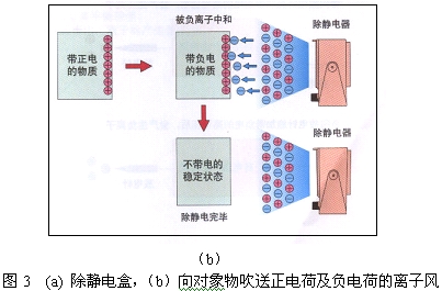 除靜電器是一種通過向?qū)ο笪锎邓驼姾杉柏?fù)電荷的離子風(fēng)來中和對(duì)象物帶電狀態(tài)的裝置,如圖3(b)所示。