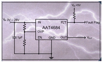 用AAT4684—3x2.75mml包裝提供高達(dá)28V的過電壓保護(hù)。其特征為:最高+28V的過電壓保護(hù);固定或可調(diào)節(jié)的過電壓保護(hù)閾值;3V欠壓鎖定閾值,即快速過電壓保護(hù)響應(yīng),過電壓瞬變值1μs(最大);低靜態(tài)電流,即常用-30μA與關(guān)機(jī)(禁用)時(shí)電流最大為1μA;常用100mΩ(最大為130mΩ)RDS(ON),電壓為4.5V;最大連續(xù)電流為1.8A;TSOPJW—12封裝。