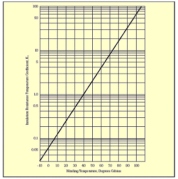 Kt -在一定的線圈溫度下,絕緣阻抗的溫度系數(shù),可從圖10中查到。