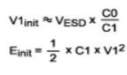 4. 能夠在瞬間導致IC損壞的能量相當于微焦級,有外部電源去耦電容時,考慮這一點非常重要,從電源電容(C1)傳遞到IC的能量是: