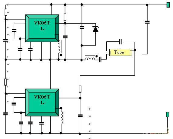在圖1的變換器半橋中,VK06TL被指定用于上橋臂和下橋臂,因?yàn)椴捎脙蓚€(gè)VK06TL,幾乎無需外部器件,只用兩個(gè)二次繞組就可以導(dǎo)通一次側(cè)扼流圈,所以,設(shè)計(jì)一個(gè)效率極高而成本極低的熒光燈變換器是可行的。