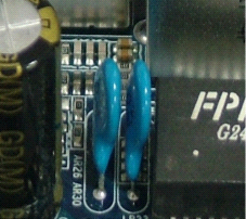 主板上小尺寸的貼片電容,我們無從判斷品牌,容值等參數(shù),所以我們主要是去觀察那些大的插腳電容,主要分布在主電源模塊和CPU電源模塊,這個不難判斷,自己去找高樓林立的電容群吧。用料上來看,固態(tài)電解電容為上佳,如下圖藍(lán)色標(biāo)記的電容,基本外觀是鋁殼包裝。但目前市場上,某些黑心廠商,為了使自己的產(chǎn)品能夠混淆視聽,也給普通的液態(tài)電解電容套上了鋁殼外衣,達(dá)到以次充好的目的。如下圖,黑色標(biāo)記的鋁殼電容為看上去很像固態(tài)電解電容的液態(tài)電解電容,這個在一些廉價主板上應(yīng)用的較多。