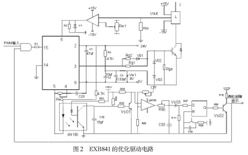 Vs02的集電極輸出同時接微處理器,可及時顯示故障信息,實現(xiàn)故障報警。EXB841的軟關(guān)斷時間是由內(nèi)部元件R7和C4的時間常數(shù)決定的,為了提高軟開關(guān)的可靠性,在EXB841的4和5兩端外加可調(diào)電阻Rw2,可調(diào)節(jié)軟關(guān)斷時間,在4和9腳兩端外加電容 C01,可避免過高的di/dt產(chǎn)生的電壓尖峰,但應(yīng)合理選擇二者的值,太大的值將增大內(nèi)部三極管V3的集電極電流。