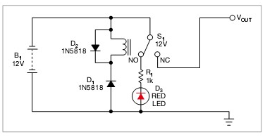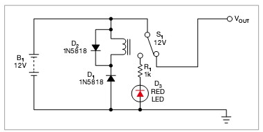 這個方法是用一只繼電器來處理反極性電壓問題。例如,12V供電系統(tǒng)使用12V的繼電器。當(dāng)為電路施加正確極性時,D1為反偏,繼電器S1保持關(guān)閉狀態(tài)。則輸入和輸出電源線正常連接到繼電器的端子,電流就流到最終電路上。二極管D1阻擋了繼電器的供電,防止電路耗電?! ?br />