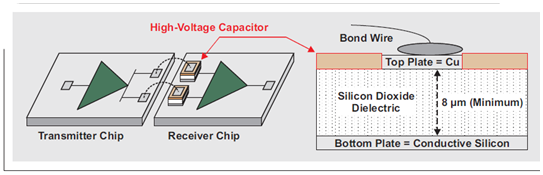 圖 2 電容隔離器內(nèi)部結(jié)構(gòu)的簡化結(jié)構(gòu)圖[page]