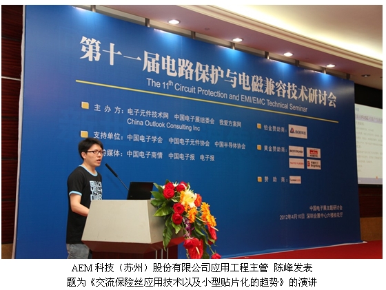 電路保護專業(yè)技術(shù)與解決方案供應(yīng)商AEM科技股份有限公司于2012年4月10日出席了由CNT Networks、中國電子展組委會和China Outlook Consulting聯(lián)合舉辦的第十一屆電路保護與電磁兼容技術(shù)研討會。