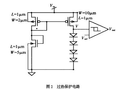 過熱保護電路的另一個關鍵在于電路只受溫度變化的影響,不受電壓變化的影響。完全不受電壓變化影響的理想情況是不可能出現的,就要想辦法讓電路盡量少受電壓變化而帶來的影響。