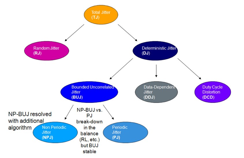 更加先進的方法是實現(xiàn)識別BUJ的抖動分析算法,這涉及在分隔DDJ和PJ之后在抖動分析中增加一個額外步驟,把NP-BUJ與RJ分開,如圖5所示。一個關鍵優(yōu)勢是這適用于每個場景,因為它不需要控制侵入信號,非線性TX不會帶來問題。此外,無界串擾成分將正確識別為無界。這種方法的缺點是結(jié)果仍有一些悲觀。