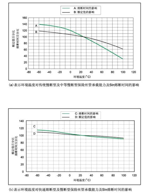 3、環(huán)境溫度對保險絲管承載能力的影響。詳見“環(huán)境溫度”
