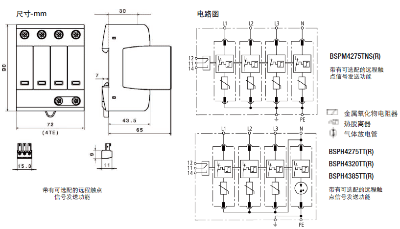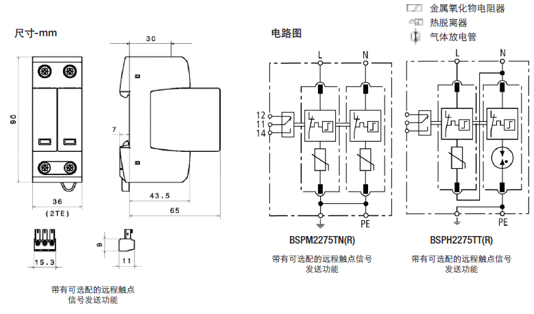 這種雙極設(shè)備的特點(diǎn)是,在TN系統(tǒng)中作為一種結(jié)合了避雷器和浪涌保護(hù)器的模塊使用(“2-0”電路)。