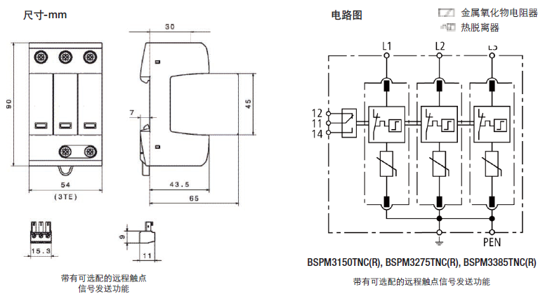 這種三極設(shè)備的特點(diǎn)是,用于TN-C 230/400V系統(tǒng)("3-0"電路)中防止浪涌。