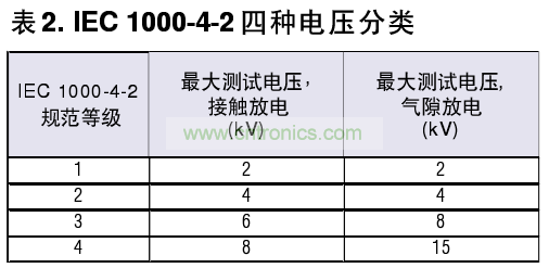 第二種方法是IEC 1000-4-2 >現(xiàn)已成為國際標準。相比Method 3015.7測試條件,它規(guī)定了更高的電容和更低的電阻}IE C 1000-4-2被廣泛地)II于測試終端設(shè)備的接口(表2)。值得一提的是> Maxim公司的模擬開關(guān)和RS-232/RS-485接口IC完個符合這些ESD標準,且無須外圍兒件。
