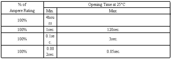 保險絲需要有一定的過載能力:UL規(guī)范保險絲的最大不熔斷電流是110%In; IEC規(guī)范保險絲的最大不熔斷電流是150%In或120%In保險絲也要求在超過限量的過載電流時能及時地燒斷:UL規(guī)范保險絲的最小熔斷電流在130%In 左右; IEC規(guī)范保險絲的最小熔斷電流在180%In 左右;