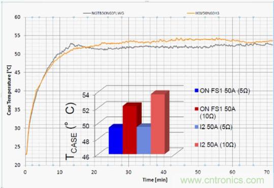 安森美半導(dǎo)體的客戶已成功使用其場截止型第一代IGBTNGTB50N60FLWG開發(fā)出了各種應(yīng)用,如功率10 千伏安、功率因數(shù)0.9的不間斷電源,以及采用半橋諧振拓?fù)浣Y(jié)構(gòu)的1450瓦廚用電爐??蛻粽J(rèn)為,安森美半導(dǎo)體場截止型第一代IGBT的性能達(dá)到了市場上最好的性能;其IGBT在電磁爐上的溫升低于其它2款I(lǐng)GBT。