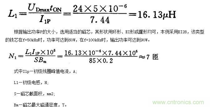 (1)即使輸入電壓最大,主開關(guān)器件導通時間最長,也不至于使變壓器的磁芯飽和;