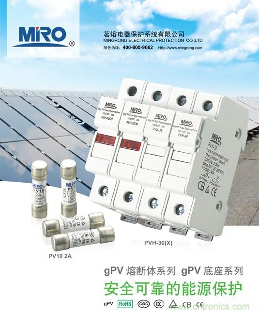 浙江茗熔電器生產(chǎn)的PV系列熔斷器是專門為保護(hù)太陽(yáng)能光伏(PV)系統(tǒng)而設(shè)計(jì)的,適用于光伏組件串和光伏方陣電能系統(tǒng)中光伏匯流箱的應(yīng)用;熔斷器能夠分?jǐn)喙收螾V陣列(反向電流、多排陣列故障)產(chǎn)生的較低過(guò)載電流,以保護(hù)和隔離光伏組列。該系列產(chǎn)品額定工作電壓DC 1000V,額定工作電流2A~30A的光伏電能系統(tǒng)中,具有全范圍分?jǐn)嗄芰Φ娜蹟囿w,額定分?jǐn)嗄芰C1000V/10kA。PV10光伏熔斷體由純銀帶/絲制成的熔體封裝于由高強(qiáng)度有機(jī)材質(zhì)制成的熔管內(nèi);熔管中充滿經(jīng)化學(xué)處理過(guò)的高純度石英砂作為滅弧介質(zhì);熔體兩端通過(guò)焊接與接觸帽(內(nèi)蓋)牢固電連接,內(nèi)置的絕緣隔離墊片,能滿足光伏熔斷器系統(tǒng)在極端使用條件下的應(yīng)用,確保性能更穩(wěn)定,表現(xiàn)更優(yōu)異、可靠。 產(chǎn)品符合IEC60269-6和GB/T 13539.6標(biāo)準(zhǔn)。熔斷體外形尺寸和基本性能與國(guó)內(nèi)外同類型產(chǎn)品接近,故能作為國(guó)外引進(jìn)設(shè)備上同類型熔斷體的替換。