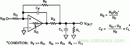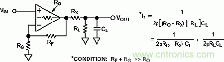 在運放的輸出端和負(fù)載電容之間串入一個電阻RX,一般而言它的阻值為10-100歐姆。