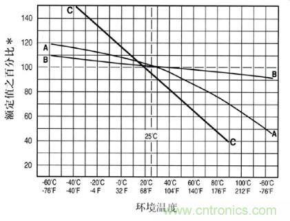 如圖所示為溫度降額曲線,以曲線A為例,在溫度為80℃時,Tf為0.75。因此,若不考慮其他特性的影響,對3A的應(yīng)用,至少應(yīng)選擇4A(3/0.75=4)的保險絲。