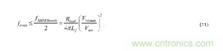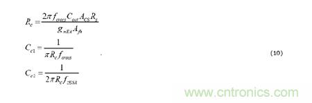 要微調(diào)已經(jīng)增加的帶寬,只需增加補償電阻RC,并且按照需要調(diào)整針對相位裕量的CC1。當然,與升壓相關(guān)的右半平面零點 (RHPZ),以及交叉頻率低于RHPZ頻率的50%,實現(xiàn)可以接受的相位裕量等約束條件由以下方程式給出: