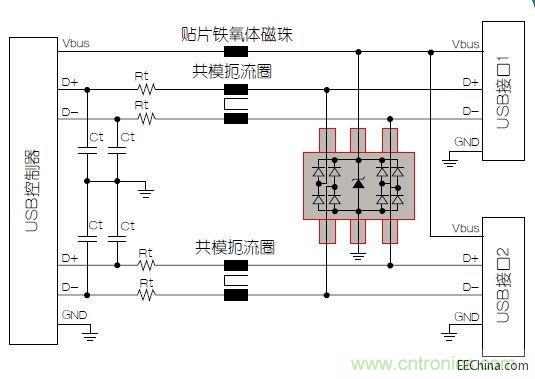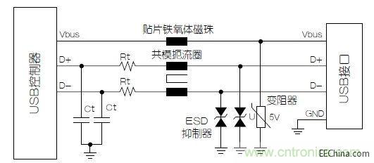 問(wèn)題:其中一些點(diǎn)可能不受影響,這些點(diǎn)包括外購(gòu)USB控制器的技術(shù)性實(shí)現(xiàn),或最終用戶使用“便宜的”USB電纜。因此必須采取一些預(yù)防性措施,防止接口受到可能損壞USB控制器的外部干擾的影響,同時(shí)通過(guò)電纜限制信號(hào)的干擾輻射量。