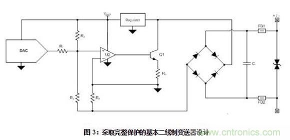 【導(dǎo)讀】在熟知變送器設(shè)計和運行的前提下,本文將討論如何設(shè)計保護(hù)這些系統(tǒng)的電路。文章中的圖片為基本的二線制變送器設(shè)計供參考。