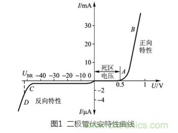 提到二極管,大家最熟悉的就是二極管的單向?qū)щ娦?,反映伏安曲線上如圖1所示。當(dāng)正向偏壓U=0.5V(硅管)時,二極管開始導(dǎo)通,電流越大電壓越大,具有很低阻抗;當(dāng)加反向偏壓時二極管不導(dǎo)通,在一定范圍內(nèi)有很小的漏電流,具有很大阻抗。其這個單向?qū)щ娦?,也起到了開關(guān)的作用,所以在整流和開關(guān)方面都有廣泛的應(yīng)用。