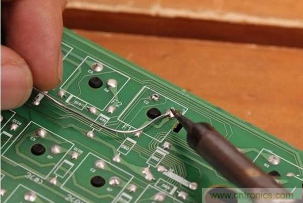 以上所說其實(shí)都是電子元器件的問題,當(dāng)然,既然PCB電路板作為元器件的落腳點(diǎn),那么電路板故障肯定也是存在的,最簡單的例子就死鍍錫部位,因制作工藝原因,在PCB腐蝕過程中,有可能會(huì)出現(xiàn)斷線問題。遇到這種情況,如果無法補(bǔ)線,那么只能用細(xì)銅絲飛線解決。
