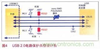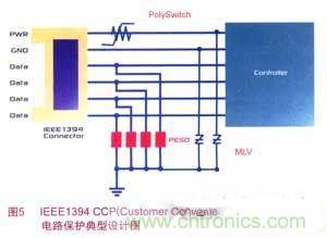 隨著USB/IEEE1394通信速率的增加,電路日趨小型化和敏感化,對(duì)電路瞬態(tài)的保護(hù)就顯得更為重要。每當(dāng)連接和斷開(kāi)PND,電路都會(huì)受到瞬態(tài)過(guò)電壓/過(guò)電流的沖擊,故需要在電源和地上分別抑制瞬間過(guò)壓。由于鉗位而不會(huì)引起供電中斷,且價(jià)格較低,MLV常被采用。為滿(mǎn)足USB和IEEE1394接口規(guī)范要求,PolySwitch器件通常用于防止USB電源線(xiàn)上因過(guò)電流造成的設(shè)備損壞,是即插即用型應(yīng)用設(shè)備的理想選擇。