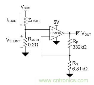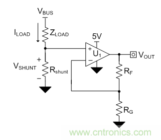 在設(shè)計低側(cè)電流感應(yīng)電路時,高性價比的方法之一是使用非反相配置運(yùn)算放大器(op amp)。圖1是使用運(yùn)算放大器的典型低側(cè)電流感應(yīng)電路原理圖。