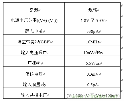 TLV906x系列高性能通用放大器可用于成本敏感型的低側(cè)電流感應(yīng)系統(tǒng),因為其增益帶寬(10MHz)、壓擺率(6.5V/µs)、偏移電壓(0.3mV)以及輸入共模電壓范圍為負(fù)電源電壓以下100mV。表1列出了一些TLV906x系列的技術(shù)參數(shù)。
