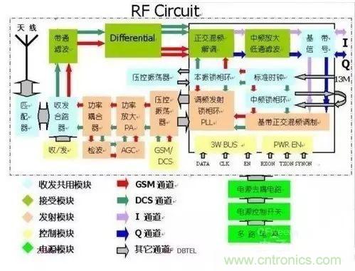 【導(dǎo)讀】隨著電路集成技術(shù)日新月異的發(fā)展,射頻電路也趨向于集成化、模塊化,這對于小型化移動(dòng)終端的開發(fā)、應(yīng)用是特別有利的。目前手機(jī)的射頻電路是以 RFIC 為中心結(jié)合外圍輔助、控制電路構(gòu)成的。射頻電路中各典型功能模塊的分析是我們討論的主要內(nèi)容。